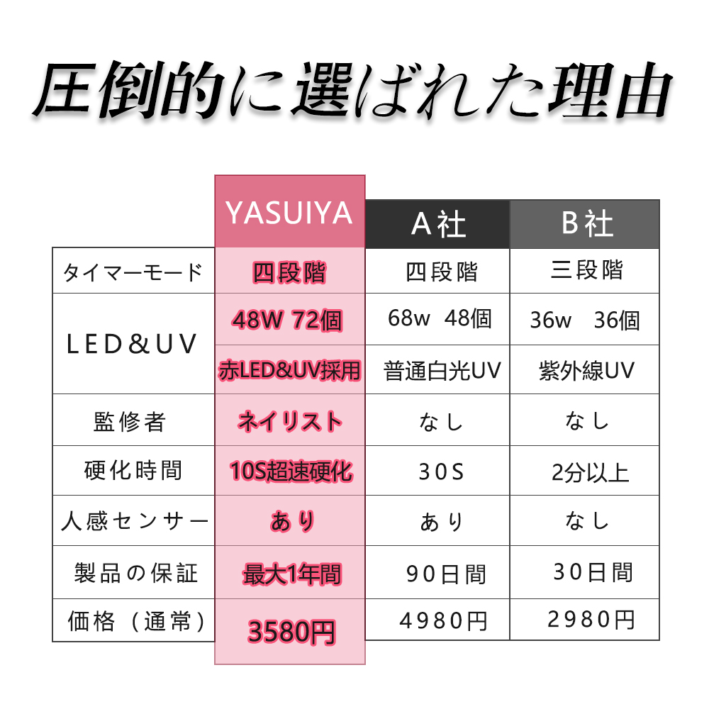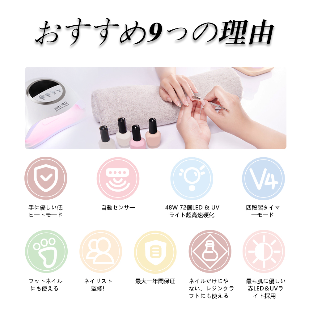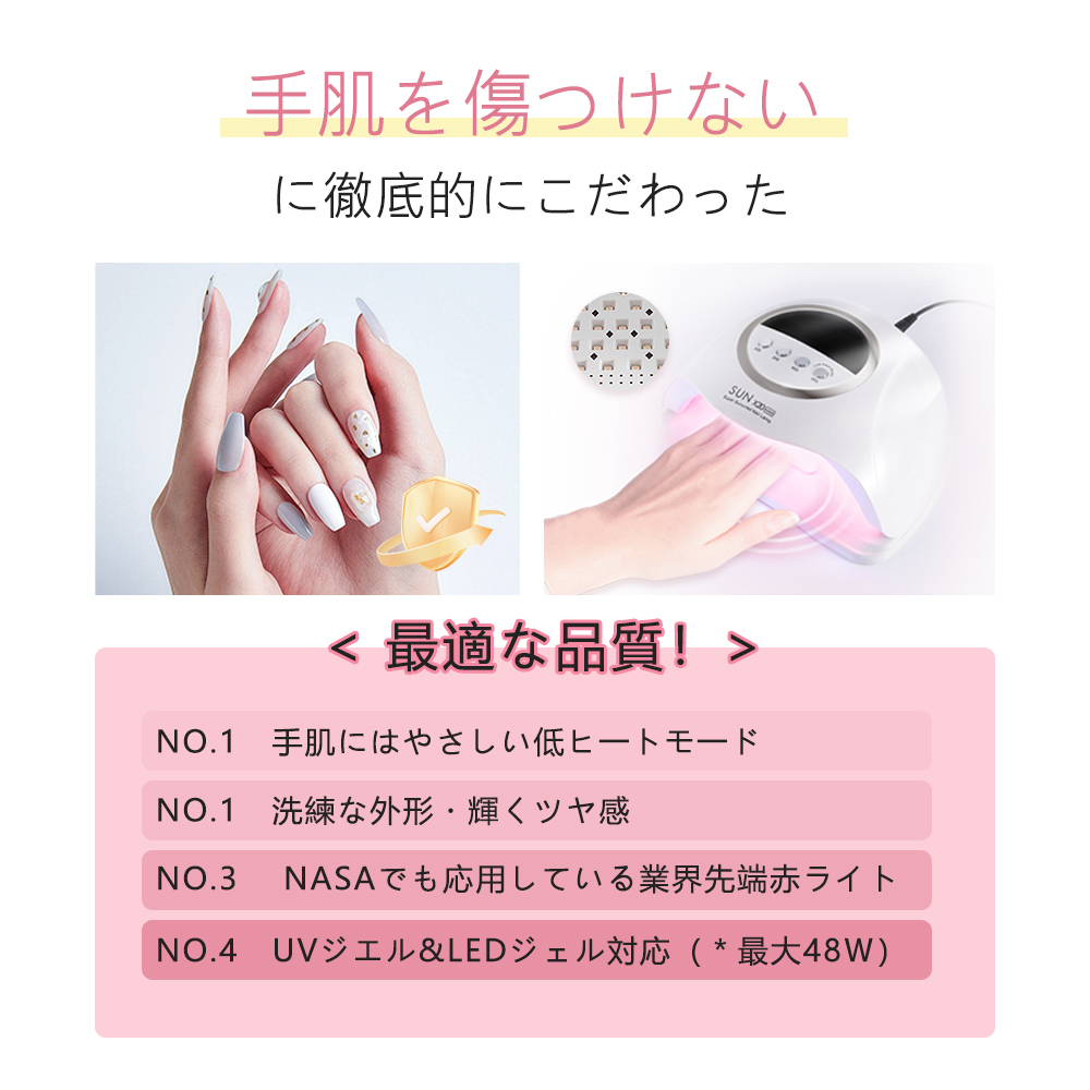 LED & UV ジェルネイルライト 48W ジェルネイル 業界注目低ヒート機能 10秒超高速硬化 セルフネイル ネイルライト 日焼け防止 UVライト UV レジン ジェルネイルシール レジンクラフト
